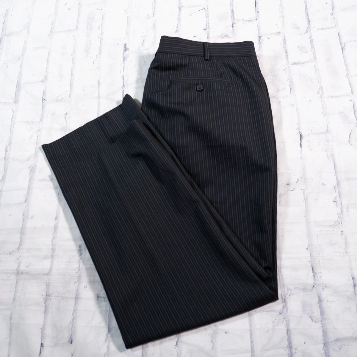 Apt 9 Black Flat Front Striped Polyester Blend Mens Dress Pants 40 X 30 Ebay